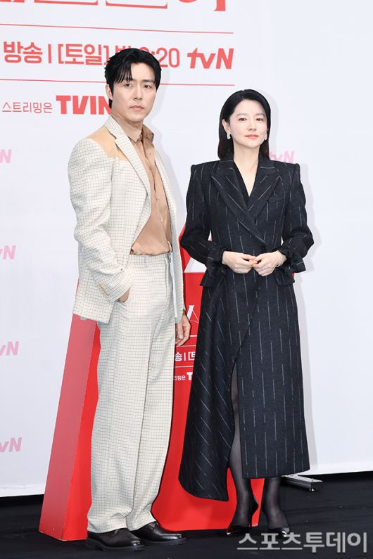 [스포츠투데이 권광일 기자] 배우 이무생, 이영애가 6일 오전 서울 구로구 라마다 신도림 호텔에서 열린 tvN 새 토일드라마 '마에스트라' 제작발표회에 참석해 포즈를 취하고 있다. 2023.12.06.