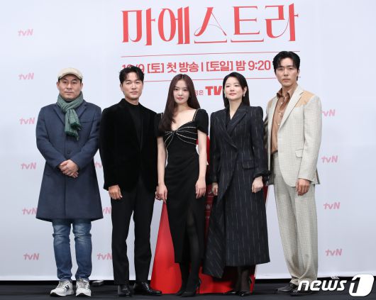 (서울=뉴스1) 권현진 기자 = 배우 김정권 감독(왼쪽부터)과 배우 이무생, 황보름별, 이영애, 이무생이 6일 서울 구로구 라마다 서울신도림호텔에서 열린 tvN 새 토일드라마 '마에스트라' 제작발표회에서 포즈를 취하고 있다. '마에스트라'는 전 세계 단 5%뿐인 여성 지휘자 마에스트라 천재 혹은 전설이라 불리는 차세음(이영애 분)이 자신의 비밀을 감춘 채 오케스트라를 둘러싼 사건의 진실을 찾아가는 미스터리 드라마다. 2023,12,6/뉴스1