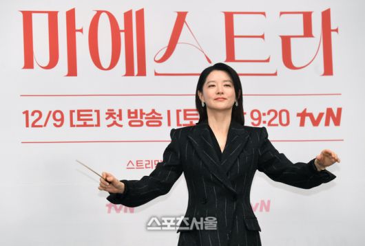 배우 이영애가 6일 오전 서울 구로구 라마다서울신도림호텔에서 진행된 tvN 토일 드라마 '마에스트라' 제작발표회에서 취재진을 향해 포즈를 취하고 있다. '마에스트라'는 전 세계 단 5%뿐인 여성 지휘자 마에스트라 천재 혹은 전설이라 불리는 차세음(이영애 분)이 자신의 비밀을 감춘 채 오케스트라를 둘러싼 사건의 진실을 찾아가는 미스터리 드라마로 이영애, 이무생, 김영재, 황보름별 등이 출연하며 김정권 감독이 연출을 맡았다. 2023. 12. 6. 박진업기자 upandup@sportsseoul.com