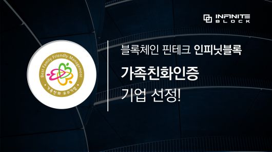 블록체인 핀테크 기업, 인피닛블록이 여성가족부가 시행하는 ‘가족친화인증’ 기업으로 선정됐다.