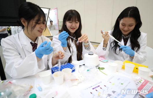 [인천=뉴시스] 지난 9월12일 오후 인천 연수구 송도컨벤시아에서 열린 2023년 인천 특성화고 채용박람회의 바이오공정 인력양성센터 부스에서 학생들이 항산화 활성 실험을 체험하고 있다. (사진=뉴시스DB). 2023.12.06. photo@newsis.com |