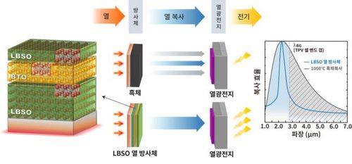 LBSO 열 방사체의 열광 전지(TPV) 에너지 변환 기술 활용 모식도 |