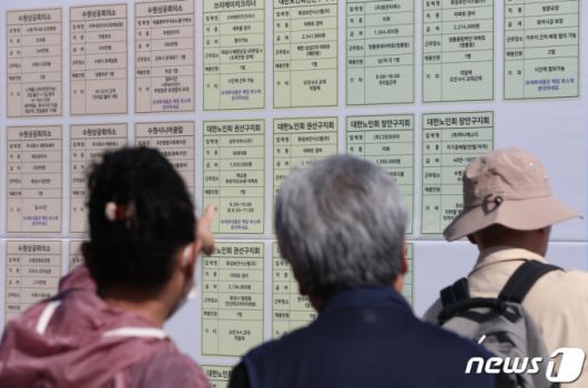 (수원=뉴스1) 김영운 기자 = 11일 오후 경기 수원시 팔달구 화성행궁에서 열린 ‘2023년 노인 일자리 채용 한마당’에서 어르신들이 구직활동을 하고 있다. 2023.10.11/뉴스1 Copyright (C) 뉴스1. All rights reserved. 무단 전재 및 재배포, AI학습 이용 금지. |