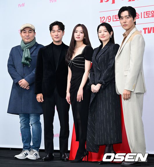 배우 김정권 감독, 김영재, 황보름별, 이영애, 이무생(왼쪽부터)가 포토타임을 하고 있다. 2023.12.06 / dreamer@osen.co.kr