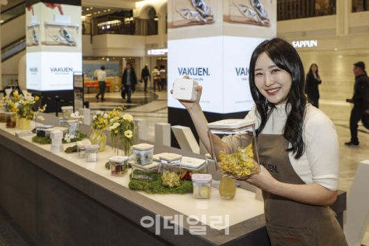 [이데일리 노진환 기자] 진공 주방용기 '바퀜'이 오는 10일까지 신세계 강남점 1층 오픈스테이지에서 브랜드 전시회 '타임 오브 바퀜'을 진행한다. '바퀜'은 기존의 잠그는 방식에서 나아가 공기를 빼내는 방식의 진공 기술력으로 최대 5배 더 보관기간을 늘려준다. 모델이 제품을 선보이고 있다. (사진=(주)메이커빌)