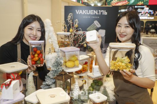 [이데일리 노진환 기자] 진공 주방용기 '바퀜'이 오는 10일까지 신세계 강남점 1층 오픈스테이지에서 브랜드 전시회 '타임 오브 바퀜'을 진행한다. '바퀜'은 기존의 잠그는 방식에서 나아가 공기를 빼내는 방식의 진공 기술력으로 최대 5배 더 보관기간을 늘려준다. 모델이 제품을 선보이고 있다. (사진=(주)메이커빌)