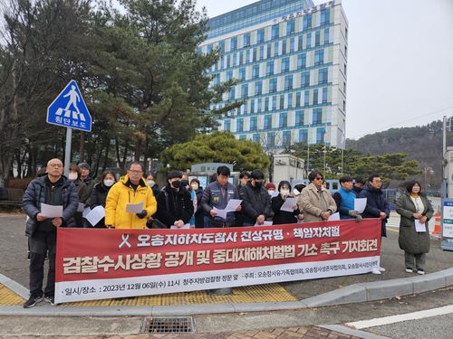 이들은 이날 청주지검 앞에서 기자회견을 열고 "지난 7월 시민사회단체가 김영환 충북지사를 비롯한 최고 책임자들을 검찰에 고발했지만, 소환조사는 물론 고발인 조사조차 진행되지 않았다"며 "꼬리 자르기 식으로 하위직 공무원들에게만 책임을 전가하려는 것 아닌지 의심된다"라고 주장했다.