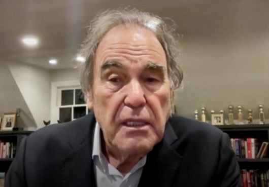 올리버 스톤 감독이 자신의 영화 ‘뉴클리어 나우’ 한국 개봉을 축하하는 영상에서 한국 관객들에게 인사하고 있다. 이놀미디어 제공 |