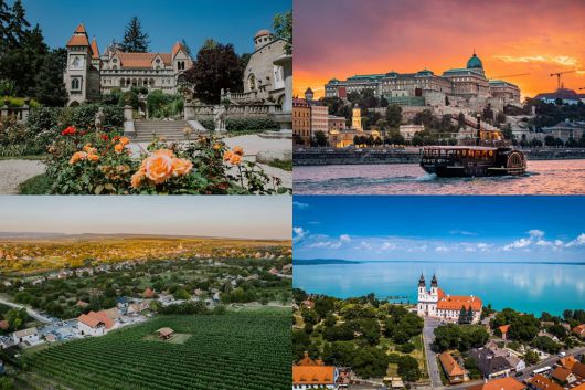 ▲ (왼쪽 상단부터) 보니 성, 크루즈 투어, 에텍, 티허니의 전경 [사진=헝가리 관광청]