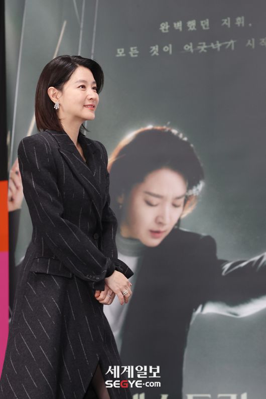 배우 이영애가 6일 오전 서울 구로구 라마다 서울 신도림 호텔에서 열린 tvN 새 토일드라마 '마에스트라'의 제작발표회에 참석해 포즈를 취하고 있다.