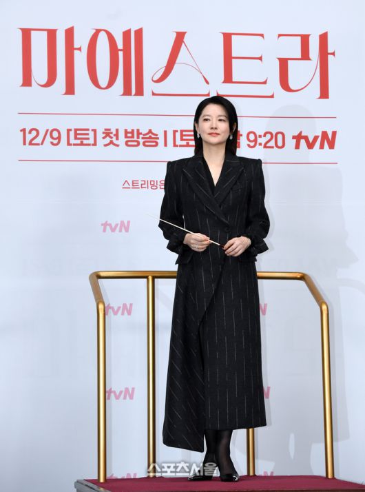 배우 이영애가 6일 오전 서울 구로구 라마다서울신도림호텔에서 진행된 tvN 토일 드라마 '마에스트라' 제작발표회에서 취재진을 향해 포즈를 취하고 있다. '마에스트라'는 전 세계 단 5%뿐인 여성 지휘자 마에스트라 천재 혹은 전설이라 불리는 차세음(이영애 분)이 자신의 비밀을 감춘 채 오케스트라를 둘러싼 사건의 진실을 찾아가는 미스터리 드라마로 이영애, 이무생, 김영재, 황보름별 등이 출연하며 김정권 감독이 연출을 맡았다. 2023. 12. 6. 박진업기자 upandup@sportsseoul.com