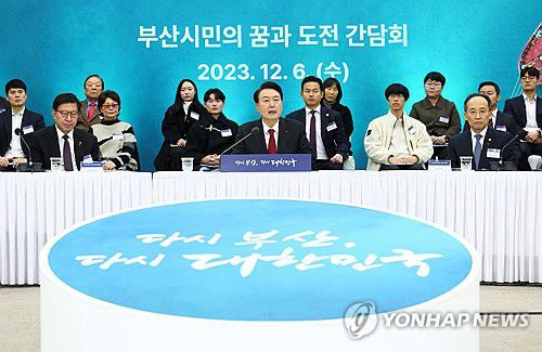 부산시민의 꿈과 도전 격려 간담회 참석한 윤석열 대통령 |