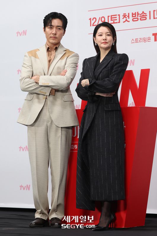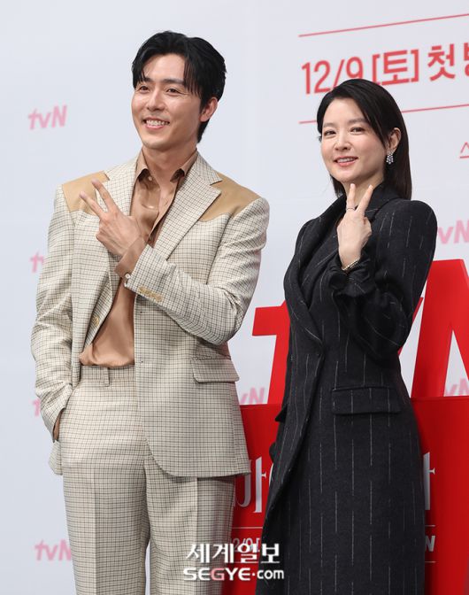 배우 이무생(사진 왼쪽)과 이영애가 6일 오전 서울 구로구 라마다 서울 신도림 호텔에서 열린 tvN 새 토일드라마 '마에스트라'의 제작발표회에 참석해 포즈를 취하고 있다. 한윤종 기자 hyj0709@segye.com ⓒ 세상을 보는 눈, 세계일보