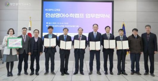 6일 부산교육청에서 인성영어수학캠프 업무 협약식이 진행되고 있다. |