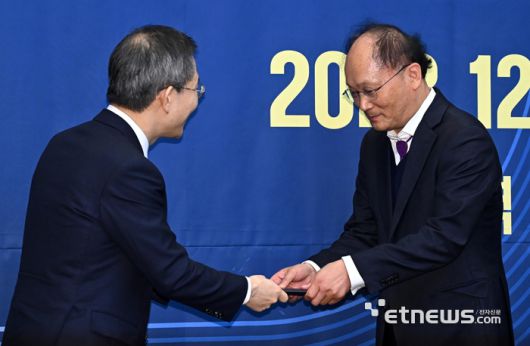 제1회 스마트빌리지 챔피언 페스타가 과학기술정보통신부 주최, 한국지능정보사회진흥원(NIA) 주관으로 6일 서울 중구 LW컨벤션에서 열렸다. 이종호 과기정통부 장관이 스마트빌리지 챔피언에 선정된 신안군에 시상하고 있다. 이동근기자 foto@etnews.com [Copyright © 전자신문. 무단전재-재배포금지]