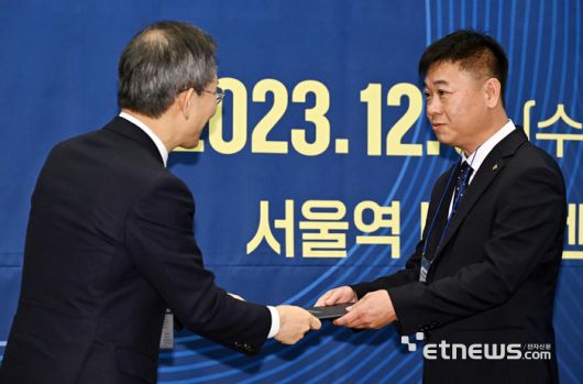 제1회 스마트빌리지 챔피언 페스타가 과학기술정보통신부 주최, 한국지능정보사회진흥원(NIA) 주관으로 6일 서울 중구 LW컨벤션에서 열렸다. 이종호 과기정통부 장관이 스마트빌리지 챔피언 에 선정된 케이그린텍에 시상하고 있다. 이동근기자 foto@etnews.com [Copyright © 전자신문. 무단전재-재배포금지]