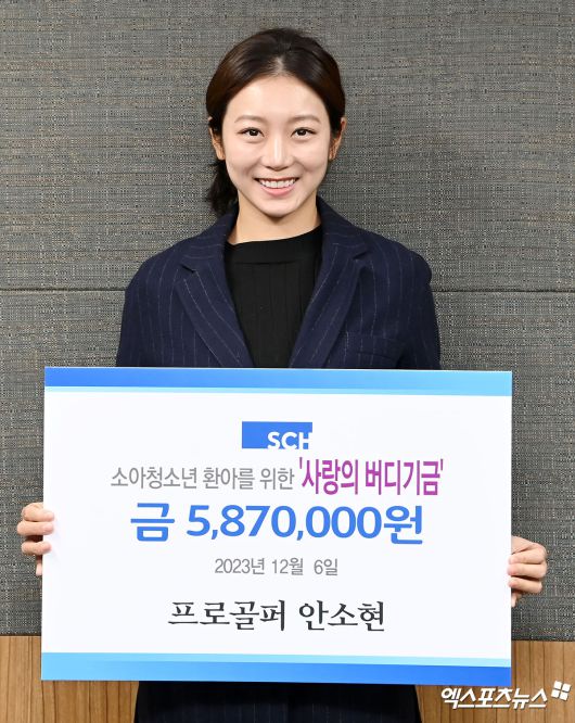 (엑스포츠뉴스 김한준 기자) 6일 오전 서울 한남동 순천향대학교 부속 서울병원에서 '안소현 프로골퍼 소아청소년 환아를 위한 '사랑의 버디기금' 전달식이 진행됐다. 이날 전달식에 참석한 프로골퍼 안소현이 포즈를 취하고 있다.김한준 기자 kowel@xportsnews.com