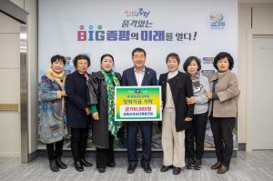 [중부매일 송창희 기자] 증평군여성단체협의회(회장 이갑순)가 5일 증평군청을 찾아 지역의 우수 인재 양성을 위해 써달라며 인삼골축제 판매 수익금 70만원을 (재)증평군민장학회(이사장 이재영 증평군수)에 기탁했다. 이갑순 회장은 "증평군의 아이들이 꿈을 키우고 지역발전을 이끌어갈 인재로 성장하는데 조금이나마 보탬이 되길 바란다"고 말했다. 증평군여성단체협의회는 각종 판매행사와 다양한 봉사활동을 통해 꾸준히 기금을 모아 매년 온정의 손길이 필요한 곳곳에 따스한 나눔을 실천하고 있으며 지역인재육성을 위한 장학금 전달도 2010년도부터 이어오고 있다.
