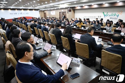 원주시는 지난 10월부터 ‘종이 없는 스마트회의’를 도입했다고 6일 밝혔다. 회의자료 출력에 소비되는 시간을 줄이고 종이와 토너 사용을 절약해 탄소중립에 앞장서자는 취지다.