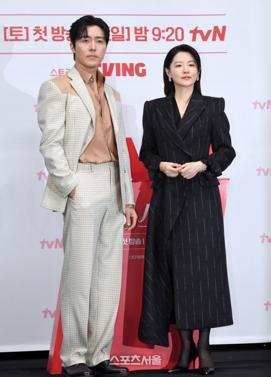 배우 이무생(왼쪽)과 이영애가 6일 오전 서울 구로구 라마다서울신도림호텔에서 진행된 tvN 토일 드라마 '마에스트라' 제작발표회에서 취재진을 향해 포즈를 취하고 있다. '마에스트라'는 전 세계 단 5%뿐인 여성 지휘자 마에스트라 천재 혹은 전설이라 불리는 차세음(이영애 분)이 자신의 비밀을 감춘 채 오케스트라를 둘러싼 사건의 진실을 찾아가는 미스터리 드라마로 이영애, 이무생, 김영재, 황보름별 등이 출연하며 김정권 감독이 연출을 맡았다. 2023. 12. 6. 박진업기자 upandup@sportsseoul.com