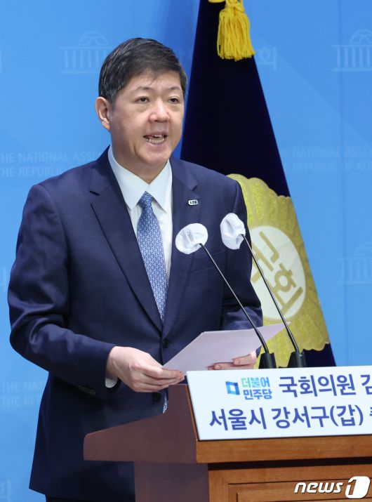 (서울=뉴스1) 송원영 기자 = 김홍걸 더불어민주당 의원이 6일 서울 여의도 국회 소통관에서 서울시 강서구갑 출마선언 기자회견을 하고 있다. 2023.12.6/뉴스1sowon@news1.krCopyright ⓒ 뉴스1. All rights reserved. 무단 전재 및 재배포, AI학습 이용 금지.
