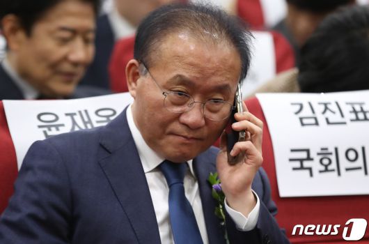 (서울=뉴스1) 임세영 기자 = 윤재옥 국민의힘 원내대표가 6일 오전 서울 여의도 국회 의원회관에서 열린 2023 제5회 대한민국 동물복지대상 시상식에서 통화를 하고 있다. 2023.12.6/뉴스1seiyu@news1.krCopyright ⓒ 뉴스1. All rights reserved. 무단 전재 및 재배포, AI학습 이용 금지.