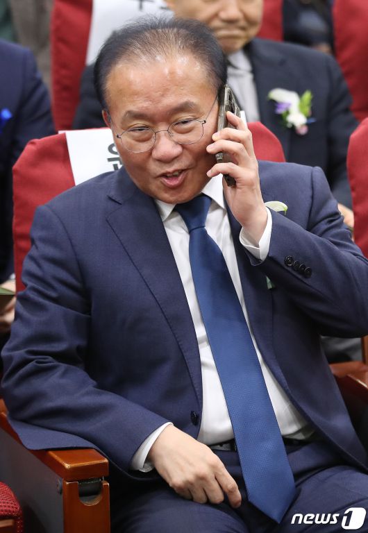 (서울=뉴스1) 임세영 기자 = 윤재옥 국민의힘 원내대표가 6일 오전 서울 여의도 국회 의원회관에서 열린 2023 제5회 대한민국 동물복지대상 시상식에서 통화를 하고 있다. 2023.12.6/뉴스1