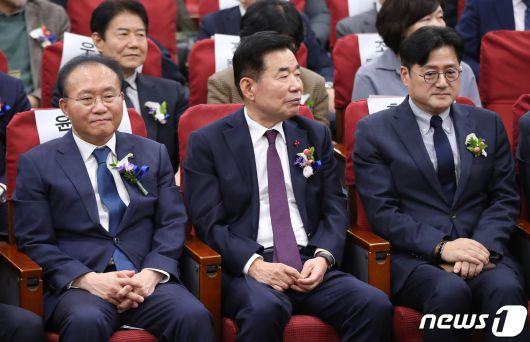 나란히 앉은 김진표·윤재옥·홍익표