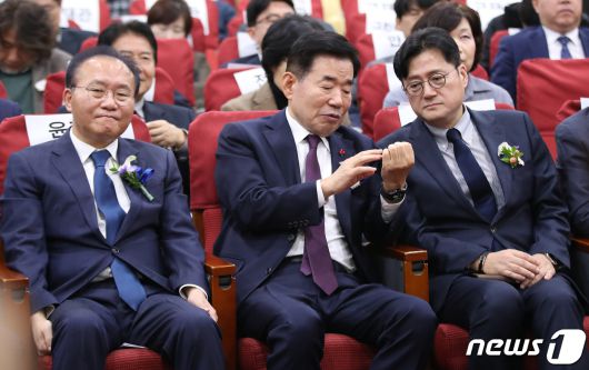 (서울=뉴스1) 임세영 기자 = 김진표 국회의장과 홍익표 더불어민주당 원내대표가 6일 오전 서울 여의도 국회 의원회관에서 열린 2023 제5회 대한민국 동물복지대상 시상식에서 대화를 하고 있다. 2023.12.6/뉴스1seiyu@news1.krCopyright ⓒ 뉴스1. All rights reserved. 무단 전재 및 재배포, AI학습 이용 금지.