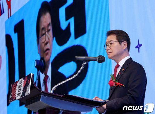 (서울=뉴스1) 장수영 기자 = 이정식 고용노동부 장관이 6일 오전 서울 종로구 JW메리어트 동대문 스퀘어에서 열린 2023 미래내일 일경험 컨퍼런스에서 기념사를 하고 있다. 2023.12.6/뉴스1presy@news1.krCopyright ⓒ 뉴스1. All rights reserved. 무단 전재 및 재배포, AI학습 이용 금지.
