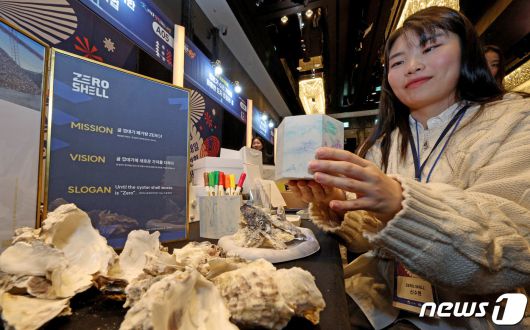 (서울=뉴스1) 장수영 기자 = 6일 오전 서울 종로구 JW메리어트 동대문 스퀘어에서 열린 2023 미래내일 일경험 컨퍼런스에서 ZERO SHELL 팀이 '굴 껍데기 문제 해결을 위한 인테리어 소품 사업'을 소개하고 있다. 2023.12.6/뉴스1presy@news1.krCopyright ⓒ 뉴스1. All rights reserved. 무단 전재 및 재배포, AI학습 이용 금지.