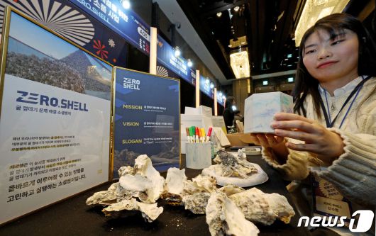 (서울=뉴스1) 장수영 기자 = 6일 오전 서울 종로구 JW메리어트 동대문 스퀘어에서 열린 2023 미래내일 일경험 컨퍼런스에서 ZERO SHELL 팀이 '굴 껍데기 문제 해결을 위한 인테리어 소품 사업'을 소개하고 있다. 2023.12.6/뉴스1presy@news1.krCopyright ⓒ 뉴스1. All rights reserved. 무단 전재 및 재배포, AI학습 이용 금지.