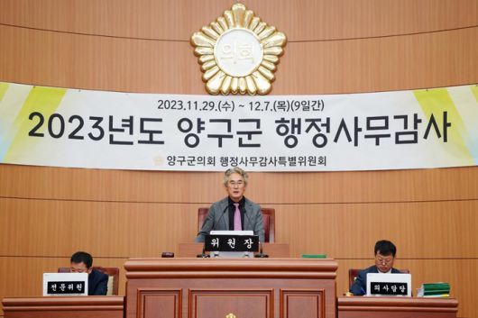 양구군의회 신철우행감특위위원장이 4일 개회를 선언하고 있다. 사진|양구군의회 |