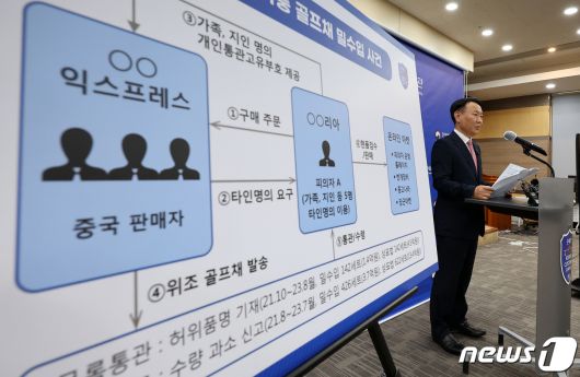 (인천=뉴스1) 이동해 기자 = 조영상 조사총괄과 과장이 6일 오전 인천 중구 인천본부세관에서 열린 중국산 짝퉁 골프채 밀수업장 검거 관련 수사경과 언론브리핑을 하고 있다. 밀수업자 A씨는 2021년 10월부터 올해 8월까지 중국 온라인쇼핑몰에서 구매한 17억9000만원 상당 유명 짝퉁 골프채 764세트를 밀수해 정품으로 둔갑시켜 중고거래 사이트를 통해 판매한 혐의를 받고 있다. 2023.12.6/뉴스1