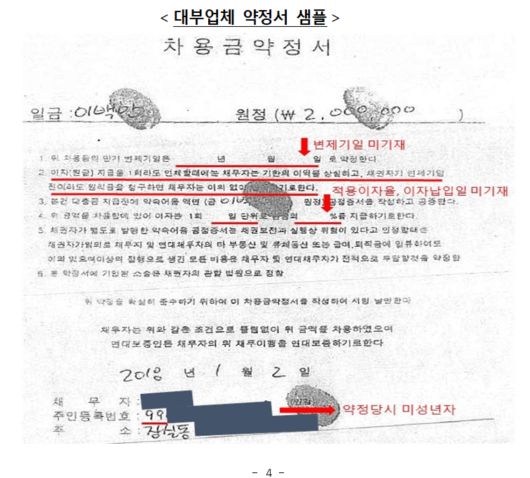 약정서에 이자율이 기재돼 있지 않더라도 실제 이자율이 이자제한법상 최고한도(20%)를 초과한 경우에는 추심 중단을 요청하고 필요시 금감원에 신고해야 한다고 강조했다.