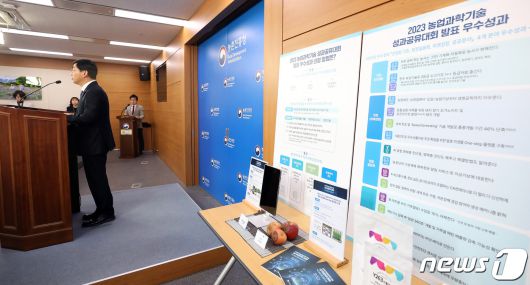 (세종=뉴스1) 김기남 기자 = 윤종철 농촌진흥청 차장이 6일 오전 세종시 정부세종청사 농림축산식품부에서 '2023 농업과학기술 성과공유대회' 내용을 발표하고 있다. 오는 7일 서울 양재동 aT센터에서 '혁신기술로 여는 농업의 미래'를 주제로 열리는 2023년 농업과학기술 성과공유대회는 우수성과 발표, 토론회 등 농업인, 소비자, 기업체가 함께 소통하는 국민과 함께하는 행사가 될 것이라고 밝혔다. 2023.12.6/뉴스1