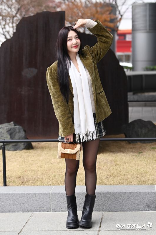 이날 녹화에 참석한 레드벨벳 조이가 출근길에 포즈를 취하고 있다.