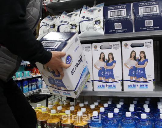 [이데일리 김태형 기자] 6일 서울 신천동 롯데마트 월드타워점에서 직원이 요소수 재고 및 판매 상황을 체크하고 있다.