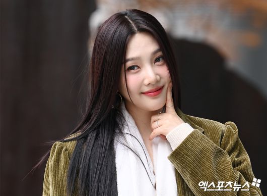 이날 녹화에 참석한 레드벨벳 조이가 출근길에 포즈를 취하고 있다.