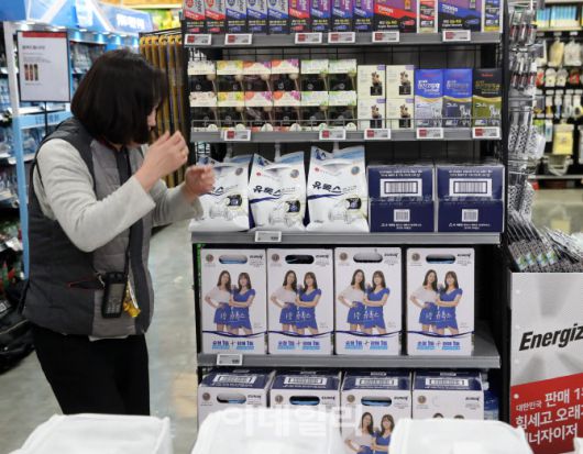 [이데일리 김태형 기자] 6일 서울 신천동 롯데마트 월드타워점에서 직원이 요소수 재고 및 판매 상황을 체크하고 있다.