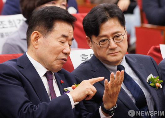 [서울=뉴스핌] 윤창빈 기자 = 김진표 국회의장, 홍익표 더불어민주당 원내대표가 6일 오전 서울 여의도 국회 의원회관에서 열린 2023 제5회 대한민국 동물복지대상 시상식에서 대화를 하고 있다. 2023.12.06 pangbin@newspim.com 저작권자(c) 글로벌리더의 지름길 종합뉴스통신사 뉴스핌(Newspim), 무단 전재-재배포 금지