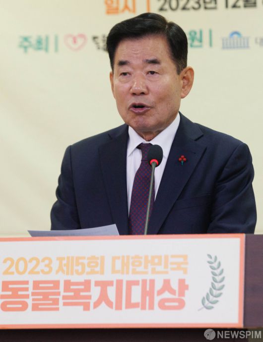 [서울=뉴스핌] 윤창빈 기자 = 김진표 국회의장이 6일 오전 서울 여의도 국회 의원회관에서 열린 2023 제5회 대한민국 동물복지대상 시상식에서 축사를 하고 있다. 2023.12.06 pangbin@newspim.com 저작권자(c) 글로벌리더의 지름길 종합뉴스통신사 뉴스핌(Newspim), 무단 전재-재배포 금지