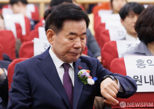 [서울=뉴스핌] 윤창빈 기자 = 김진표 국회의장이 6일 오전 서울 여의도 국회 의원회관에서 열린 2023 제5회 대한민국 동물복지대상 시상식에서 시간을 확인하고 있다. 2023.12.06 pangbin@newspim.com 저작권자(c) 글로벌리더의 지름길 종합뉴스통신사 뉴스핌(Newspim), 무단 전재-재배포 금지