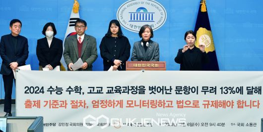 (서울=국제뉴스) 강민정 더불어민주당 의원이 6일 오전 서울 여의도 국회 소통관에서 열린 2024학년도 수능 수학영역 문항 분석 결과 발표 기자회견에서 발언을 하고 있다./사진=이용우기자