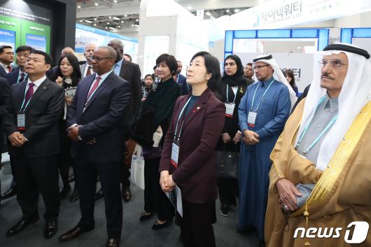 한화진 장관 '대한민국 국제 물주간' 기업부스 관람