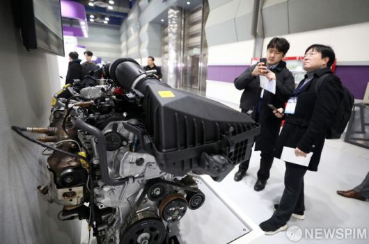 [서울=뉴스핌] 정일구 기자 = 6일 오전 서울 강남구 코엑스에서 열린 2023 대한민국 산업기술 R&D 대전을 찾은 참관객들이 수소 연소 엔진을 살펴보고 있다. 2023.12.06 mironj19@newspim.com 저작권자(c) 글로벌리더의 지름길 종합뉴스통신사 뉴스핌(Newspim), 무단 전재-재배포 금지