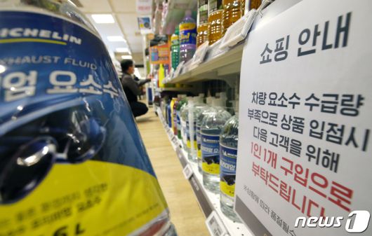 (대전=뉴스1) 김기태 기자 = 중국 세관이 한국으로 수출하는 요소의 통관을 보류한 것으로 알려지면서 요소수 공급 대한 우려가 확산되고 있는 가운데 6일 대전에 위치한 대형마트에서 요소수 수급량 부족으로 1인 1개 구매 제한 안내문이 붙어 있다. 정부는 중국발 요소 통관 지연 사태에 따른 국내 수급 안정을 위해 공공비축분을 늘리고, 베트남 등으로부터의 대체 수입량을 확대하기로 했다. 2023.12.6/뉴스1