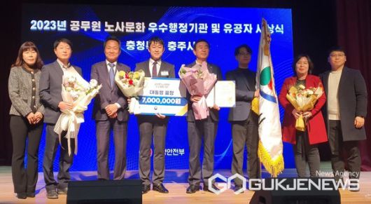 (충주=국제뉴스) 김상민 기자 = 충북 충주시(시장 조길형)와 충주시공무원노동조합(위원장 박정식)은 행정안전부가 주관하는 '2023년 공무원 노사문화 우수행정기관 인증제'에서 전국 기초자치단체 1위로 6일 '대통령상'을 수상했다고 밝혔다.