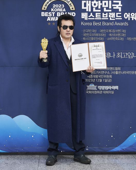 이에 수상을 한 김보성이 기념촬영을 하고 있다.