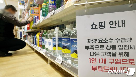(대전=뉴스1) 김기태 기자 = 중국 세관이 한국으로 수출하는 요소의 통관을 보류한 것으로 알려지면서 요소수 공급 대한 우려가 확산되고 있는 가운데 6일 대전에 위치한 대형마트에서 요소수 수급량 부족으로 1인 1개 구매 제한 안내문이 붙어 있다. 정부는 중국발 요소 통관 지연 사태에 따른 국내 수급 안정을 위해 공공비축분을 늘리고, 베트남 등으로부터의 대체 수입량을 확대하기로 했다. 2023.12.6/뉴스1